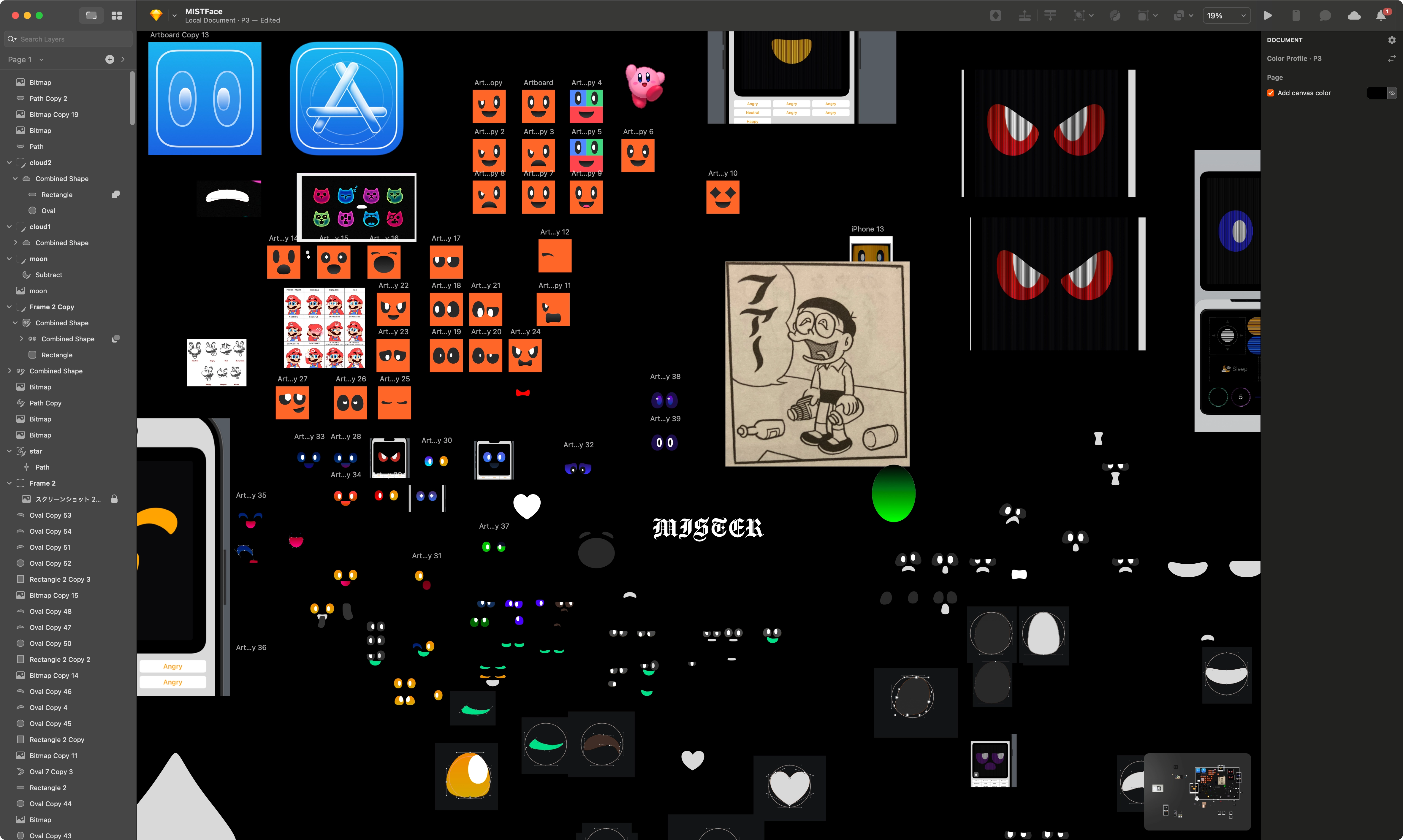 Now, there is way less limitations on MIST’s facial expressions now his eyes are rounded and pupils are added. This means I had to rethink how to add more facial expressions and sounds for each emotion. Even before that, I had to come up with his facial parts in each emotion.
