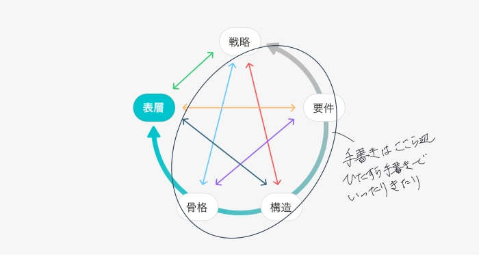 So where does hand-sketching end? To explain this more concretely, I’ll refer to the well-known “Five Stages of Design” model. In my current project, everything up to the stage between skeleton and surface has been completed by hand.